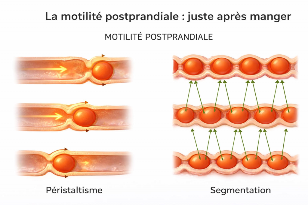 1. La motilité postprandiale (juste après le repas)